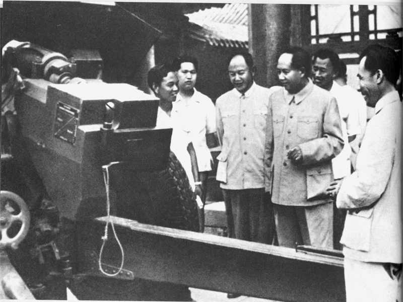 1958年6月6日毛澤東主席在國防工業匯報展覽會兵器館仔細觀看54式122毫米榴彈炮