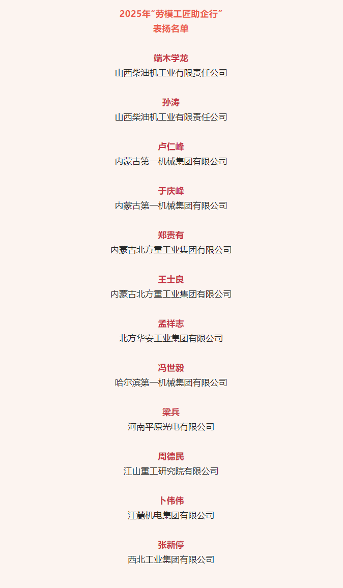 兵器工業集團12名勞模工匠入選“勞模工匠助企行”表揚名單 |